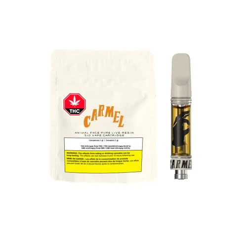 Animal Face Live Resin Vape Cart is made exclusively with fresh-frozen Animal Face, which delivers a full-spectrum, hard-hitting, true-to-flower taste. Paired with industry leading hardware that uses a ceramic heating core, you can expect a clean and consistent flavour in every pull. Carmel is proud to be a BTDF Certified Organization (Botanical Terp and Distillate Free).