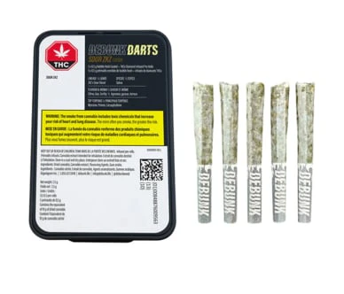Up your game with DEBUNK Triple Infused Sour ZKZ Darts, a vibrant sativa-dominant that that cuts deep with sharp lemon-lime citrus flavour and subtle earthy notes to balance it out. This five pack of darts are bubble hash coated and infused with THCA diamonds, and botanical terpenes for maximum flavour and potency. Wrapped around high-quality milled flower in a classic half-gram format, this iconic cross of ZKZ and Sour Diesel comes in at 40% THC for a pack full of potent pre-rolls.