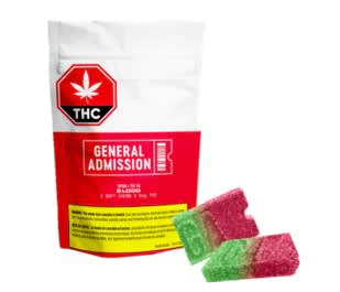Two cherry-lime flavoured soft chews with 5mg of THC in each. 10mg of THC total per pack.