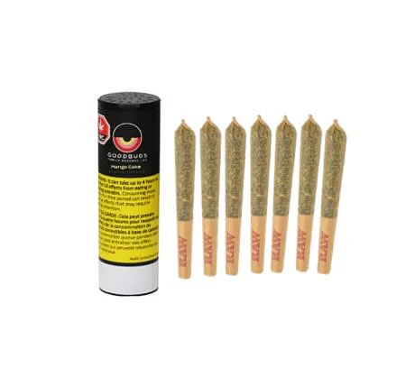 Bred in-house, BC Organic Mango Cake is an exotic dessert cross of GOOD BUDS’ original Mango Taffie strain with Wedding Cake. It leads with classic Mango Taffie smells of juicy mango sweetness with a gassy afterburn, followed by with sweet vanilla frosting undertones from the Wedding Cake. The dry pull tastes like ripe mangoes and orange zest, with a creamy cake-dough mouthfeel on the exhale. Grown in small batches in Living Organic Soils, each batch of Mango Cake is hand harvested, hang dried, and slow cured following artisanal legacy methods. Rolled in unbleached cones, Mango Cake Pre-rolls are hand-finished and hand packed into recyclable Ecolite Dube Tubes.