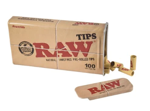 Raw Tin Including Pre-Rolled Unbleached Tips 100pk