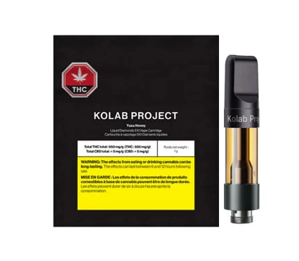 Embrace the unexpected with Kolab Project’s Yuzu Honey Diamonds 510 Cartridge, combining state-of-the-art technology with convenient design. Crafted with liquid diamonds, botanical terpenes, and flavouring agents, this cartridge offers a powerful punch of 95% THC and exotic notes of lemon, mandarin, and sweet nectar. Made in Kolab Project’s quality hardware and paired with a black metal mouthpiece that’s smooth to the touch.