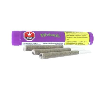 Granddaddy Gelatti is a refreshing strain that combines the sweetness of ripe apple, pear, and tree fruit with the creamy essence of bananas. Dominant terpenes include Myrcene, Ocimene, and Pinene. Expertly grown on Vancouver Island by Verte West, carefully processed and packaged by the Orchard team.