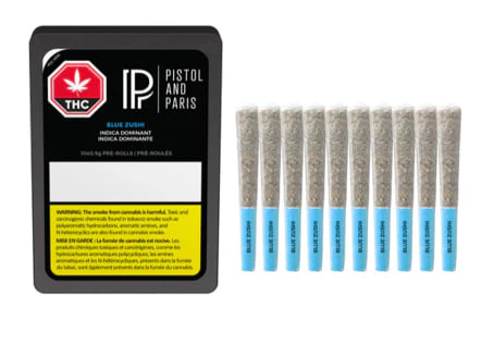 Blue Zushi 10x0.5g pre-rolls are packed with expertly milled whole flower and hand-finished with a Dutch crown. This Zkittlez and Kush Mintz cross delivers bold gassy aromatics with sweet tropical undertones, offering a smooth, full-bodied smoking experience in a convenient multi-pack.