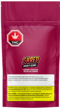 SHRED Cherry Crusher Heavy Slims are a sleek tube-style, infused pre-rolls offering a burst of super juicy, cherry aromas and up to 43% THC. Five 0.4g pre-rolls per pack, rolled for a smooth burn, infused with diamonds, distillate, and botanical terpenes, these blunts deliver a BOLD cherry experience.