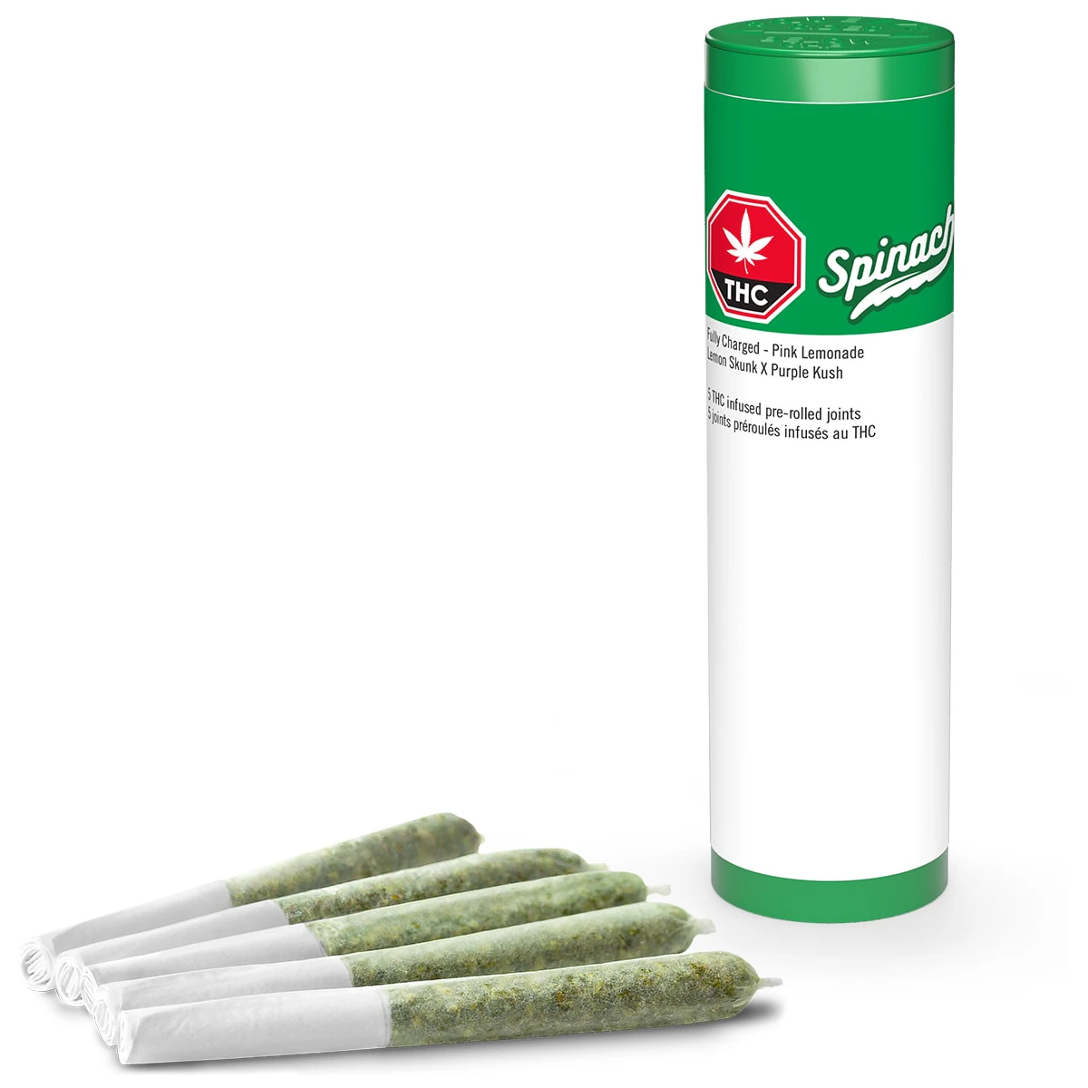 Get that thirst-quenching experience in one delicious infused pre-roll. It’s a summer that never ends with Spinach®'s Fully Charged Pink Lemonade infused pre-roll. Infused with the finest, cold-filtered cannabis extract, Spinach has leveled up our potency to sunshine level strength at 35%+ THC. With a Lemon Skunk and Purple Kush lineage and a dialed-up terpene infusion, these sweet, raspberry and refreshing lemonade flavour notes are like a fresh summer breeze on your face.