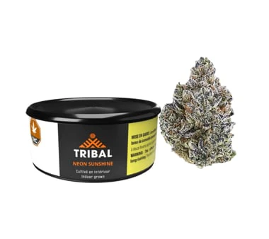 Introducing Tribal's Neon Sunshine. Created by legendary breeder, Exotic Genetix, Neon Sunshine is Zkittles x Falcon 9. Sweet and tangy flavours meet vibrant and frosty flowers. Terpenes include limonene, caryophyllene, and farnesene.