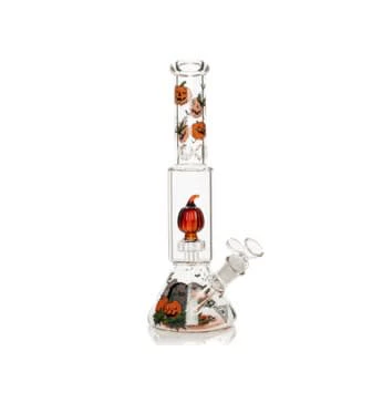 Red Eye Glass 12" Tall Dual Chamber Jack-O-Lantern Water Pipe W/Pumpkin Perc