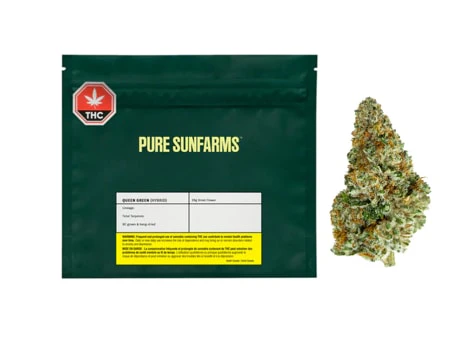 Queen Green is a heavy-hitting, herbal hybrid. This aptly named cultivar is a cross of powerful parents Space Queen x Green Crack. Its expression is fresh and earthy with prominent aromas of herbs, dairy, and toasted peppercorns, complimented by a touch of citrus and pine, from terpenes caryophyllene, limonene, linalool. In the greenhouse, the plant produces large, sticky, super tight buds with violet undertones and burnt orange hairs. Pure BC bud, hand-harvested, and hang-dried.