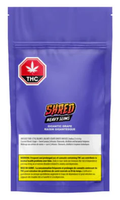 Introducing the all-new, never-been-smoked-before Gigantic Grape SHRED Heavy Slims! These sleek INFUSED tube-style rolls pack up to 43% THC, rolled for a smooth burn. Five 0.4g pre-rolls per pack Infused with diamonds, distillate, and botanical terpenes, they offer an unparalleled grapey pack. Get ready for big potency and flavour. While they may be slim these SHRED Heavy Slims are heavy potency.