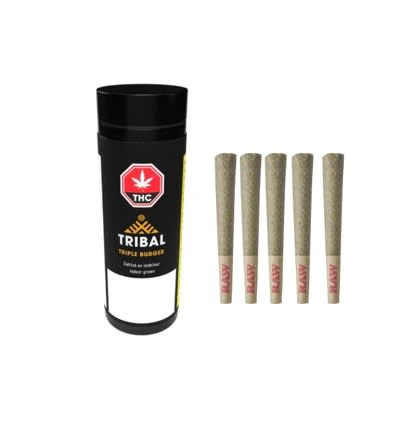 The GMO is strong with this one. Triple Burger is bred by back-crossing (GMO x GMO) to stabilize the strain, then crossing that linage with Han-Solo Burger (Larry OG X GMO Cookies). Its calyxy, gasoline scented flowers are something any connoisseur will lust after. Its intense fuel aroma gives way to an equally strong gas flavour in its smoke. Hints of skunk, rubber, cheese, and sweetness are also present. Dominant terpenes include Caryophyllene, Farnesene, and Linalool. One of the most potent strains in Tribal's line-up.