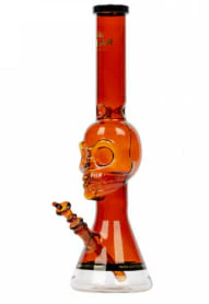 18" Tall Amber Tuxedo Skull Beaker Tube W/Black Accents