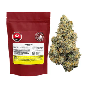 This hybrid cultivar is rich in terpenes, including terpinolene, ocimene, and mycrene, with notes of blueberry and citrus. The plant’s dense, frosty buds are hand-trimmed, cured for a minimum 3 weeks.