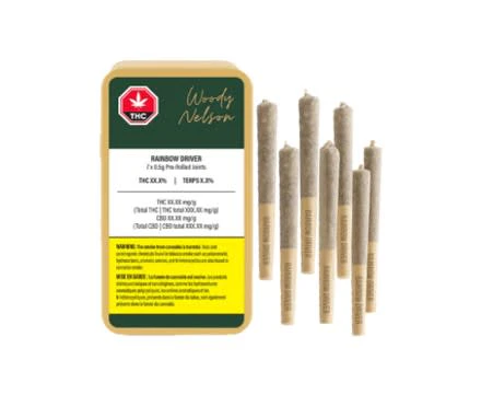 The Woody Nelson edition of the Rainbow Driver genetic was bred by Archive Seed Bank and grown in an indoor vertical farm using organic living soil. This high-THC cultivar is rich in terpenes, including Limonene, Beta-Myrcene, and Nerolidol and smells like super sweet gas. The plant’s dense, sticky buds are cured for a minimum of three weeks, never irradiated, and come in a reusable sliding tin with 7 x 0.5g pre-rolls.